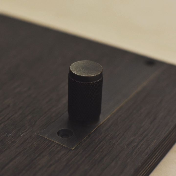 Diese schönen Möbelknöpfe von Buster&Punch in Smoked Bronze sind auf massiven Rückplatten von 130x23mm montiert. Die Möbelknöpfe selbst haben einen Durchmesser von 20 mm und sind mit dem für Buster+Punch charakteristischen Kreuz-Diamantschliff-Motiv versehen.