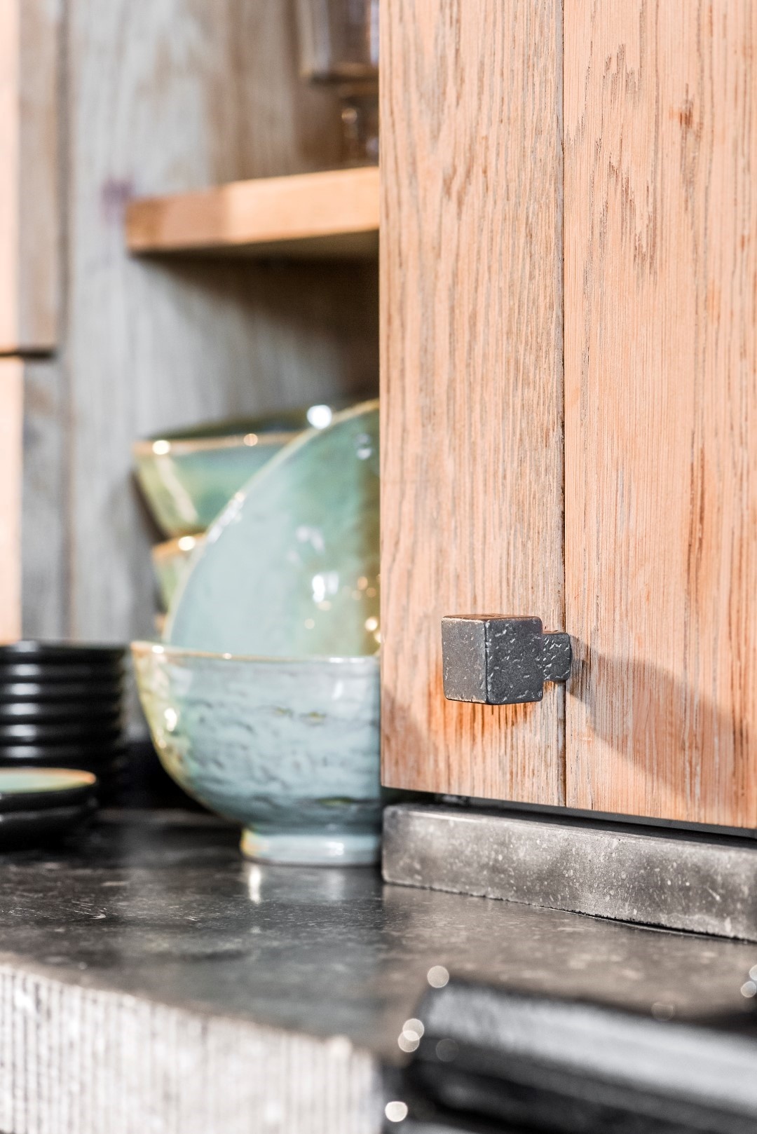Da die Möbelknöpfe aus natürlichen Materialien gefertigt sind, strahlen sie trotz ihrer geraden Form eine natürliche Wärme aus. Ideal für ein junges und zeitloses Interieur.