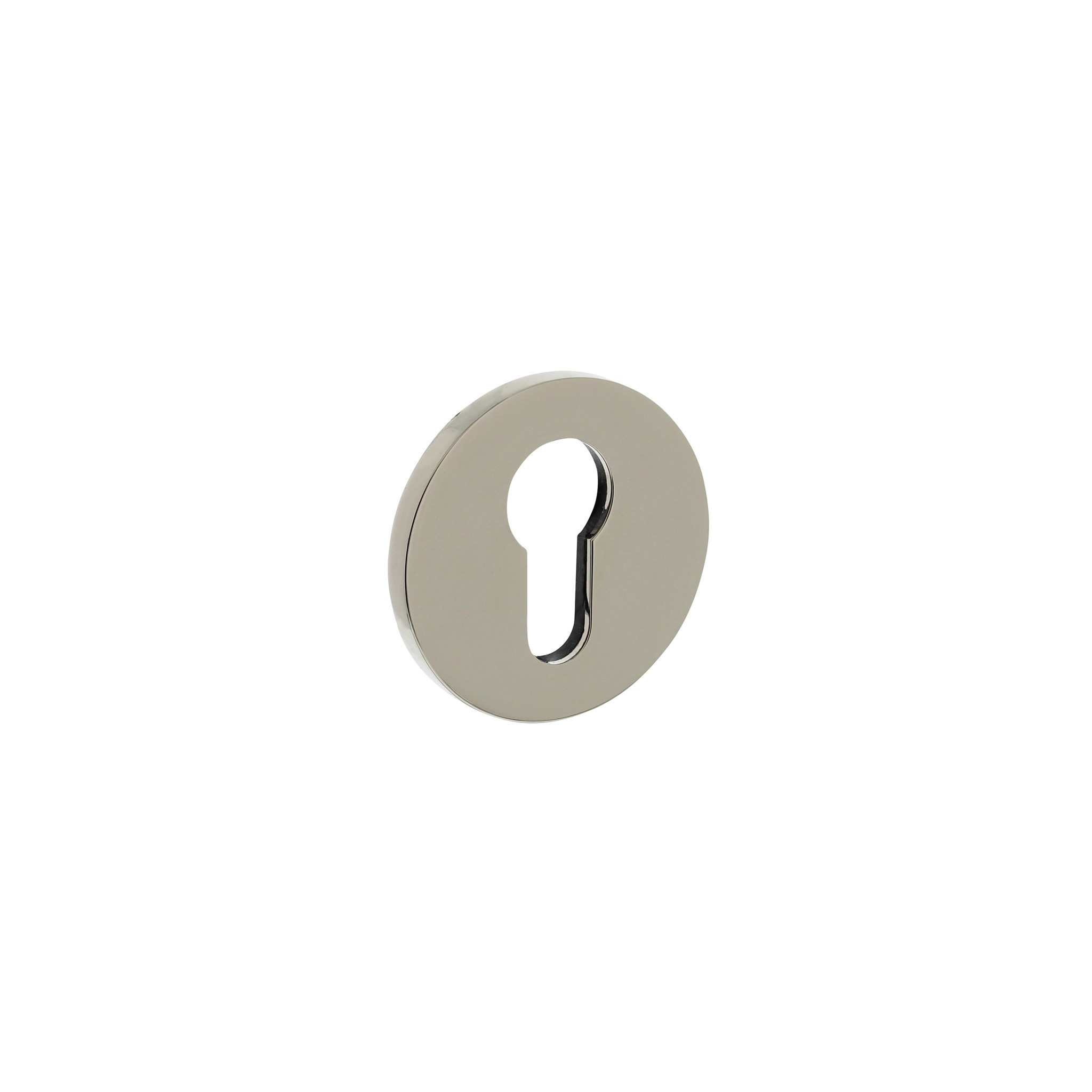 Diese Rundrosette mit Profilzylinderloch ist aus Messing und hat eine hochwertige nickelfarbene PVD-Beschichtung. Durch diese spezielle Behandlung ist das Finish von außergewöhnlicher Qualität. Dies garantiert die Erhaltung der Originallackierung über einen Zeitraum von 30 Jahren.