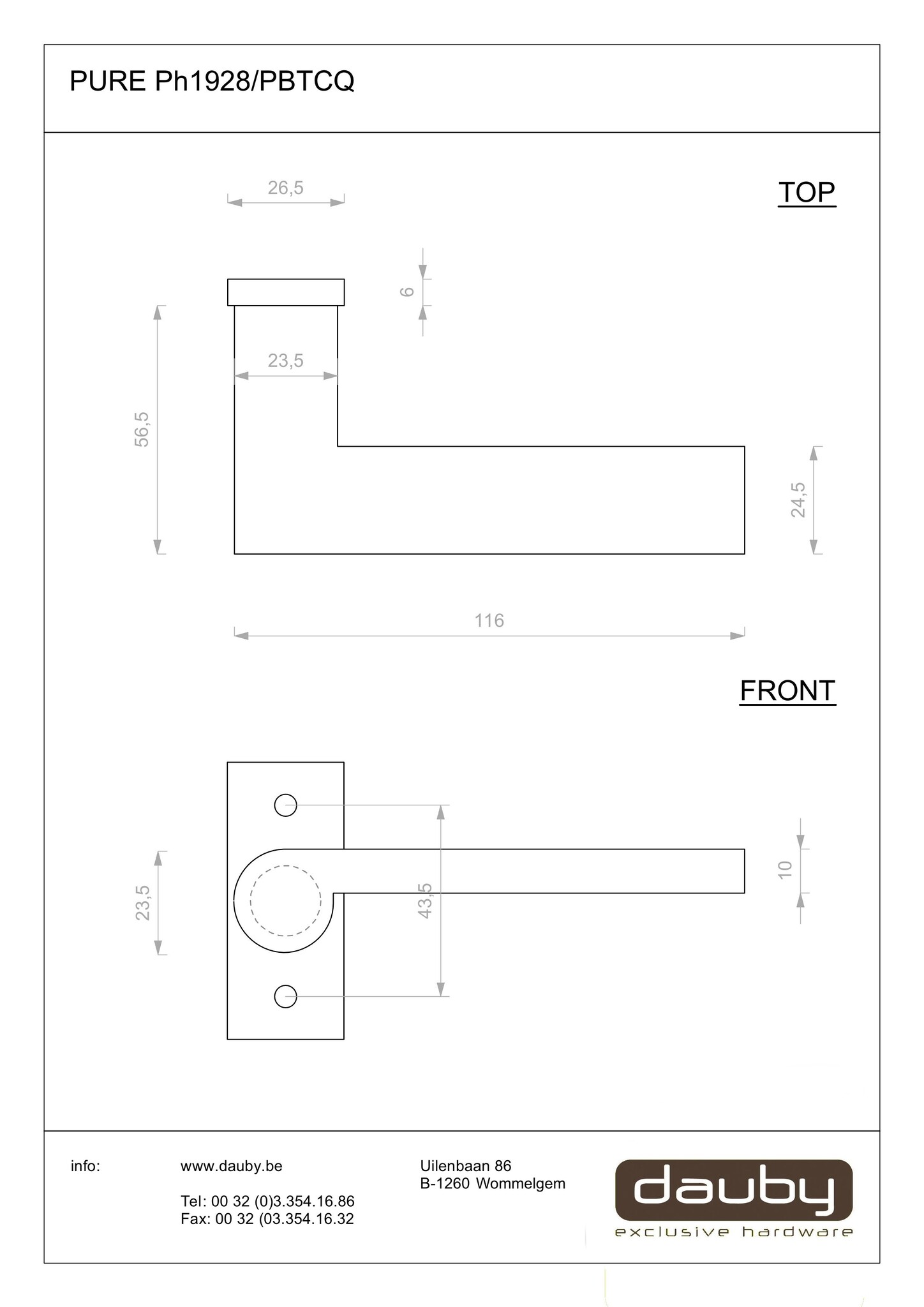 Paar Türgriffe PH1928 aus der Pure-Kollektion von Dauby aus gealtertem Eisen ohne Schlüsselplatten