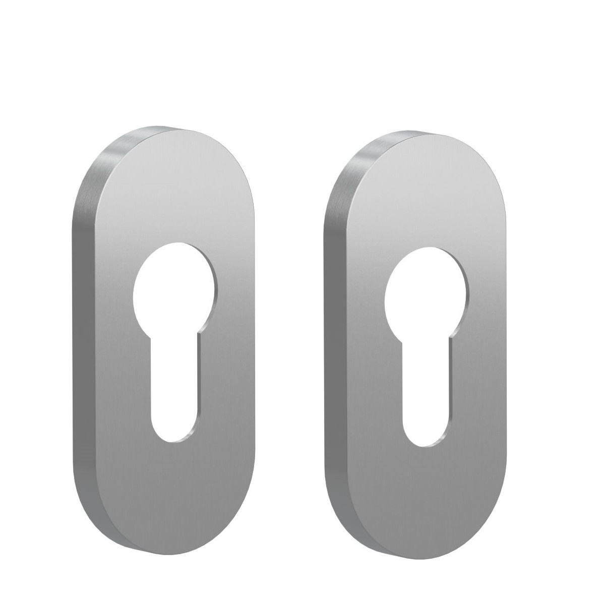 Paar ovale Zylinderrosetten 32x70x6,5 mm aus der „Tonic Line“ von Assa Abloy in gebürstetem Edelstahl