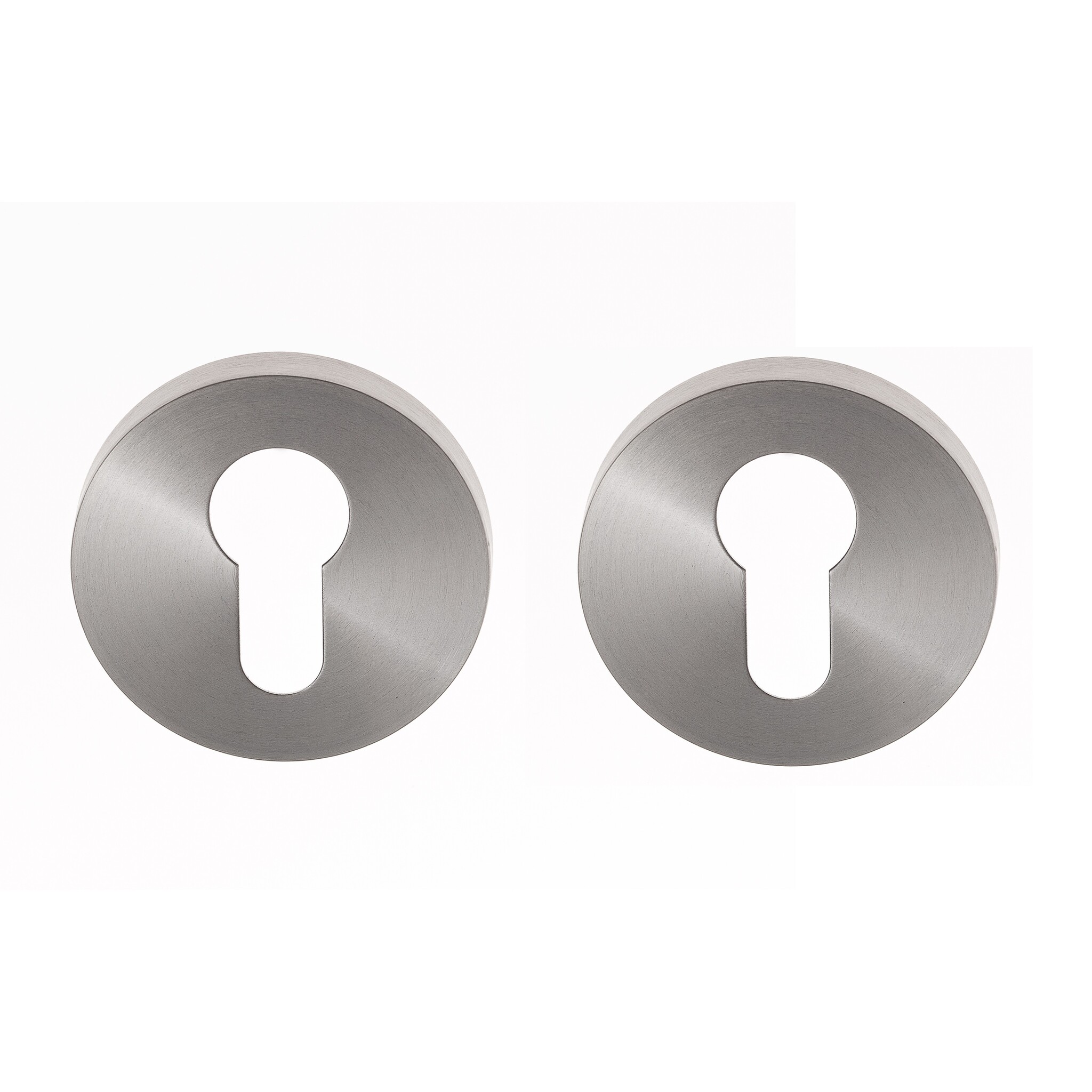 Beschreibung Zylinderrosettenpaar aus der Kollektion „Tonic Line“ von Assa Abloy in gebürstetem Edelstahl