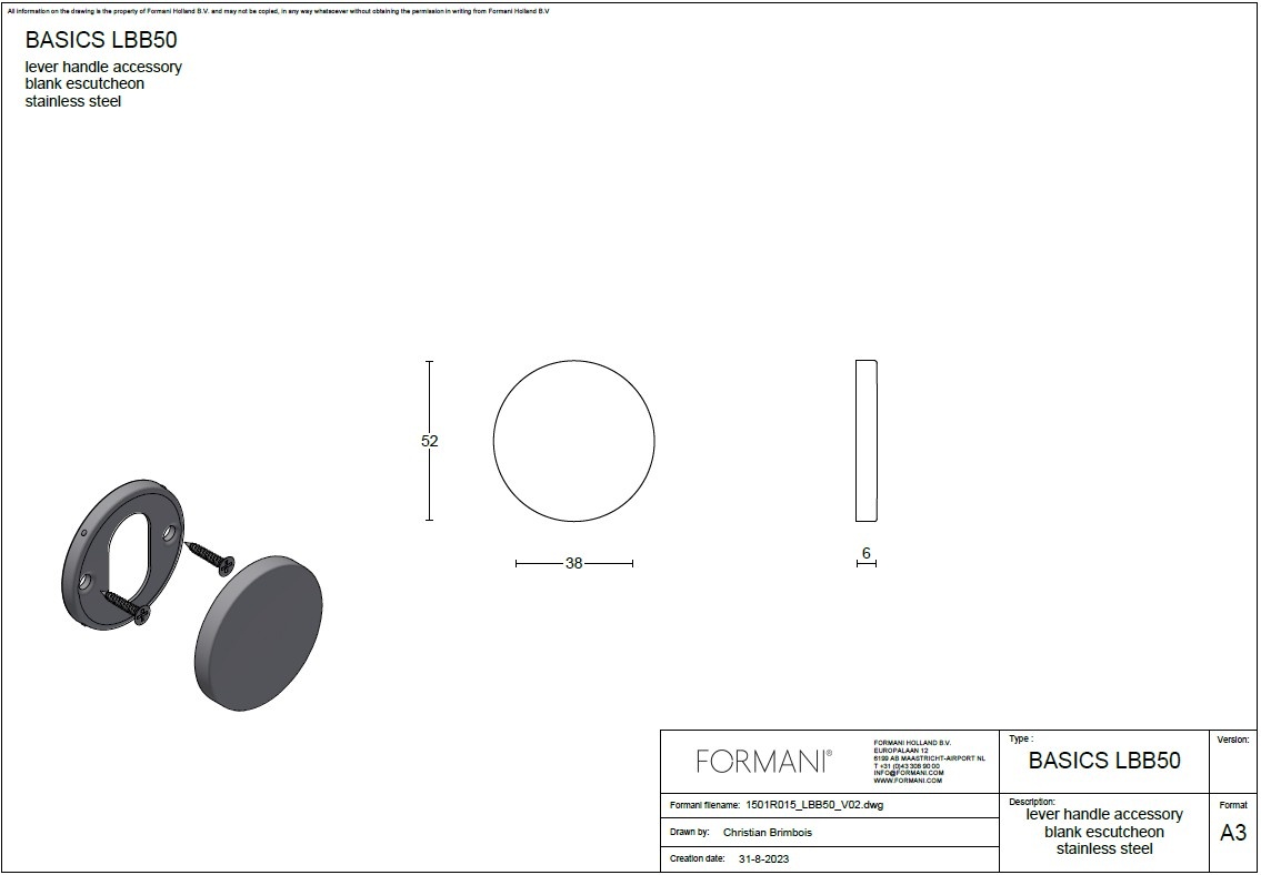 Diese LBB50-Blindplatten werden paarweise inklusive unterer Rosette aus Stahl, Abschlussrosette in PVD-Hellbronze und Montagematerial geliefert.