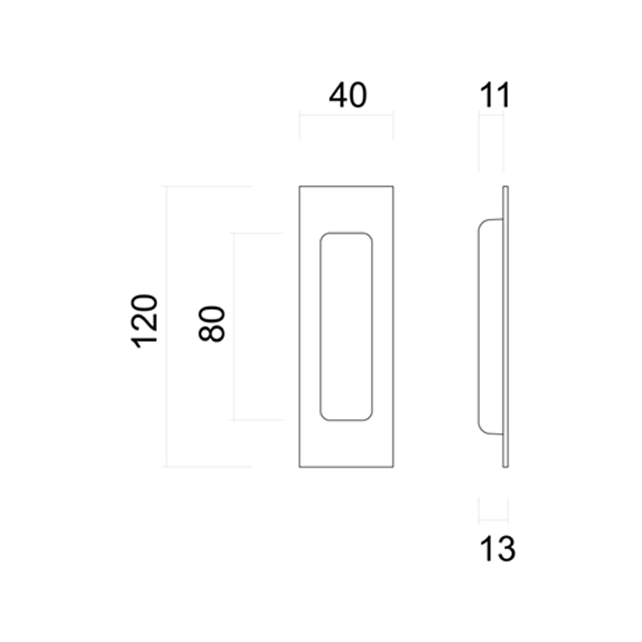 Mit Außenmaßen von 120 x 40 mm und einer geringen Einbautiefe eignet sich dieses schmale Gehäuse ideal für Anwendungen, bei denen ein dezenter und eleganter Griff gewünscht ist. Die 80 mm tiefe Aussparung gewährleistet eine komfortable Bedienung, ohne das minimalistische Design zu beeinträchtigen.