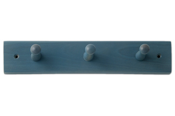 Regalgarderobe aus 320 mm breitem Buchenholz mit 3 Buchenholzhaken und anschließend mit einer blauen Lackschicht versehen