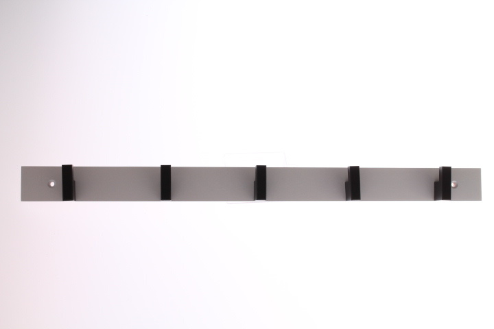 Auffällig ist die Kombination der weißen Rückwand mit den 5 schwarzen Haken, die diese Garderobe zu einem echten Hingucker macht.