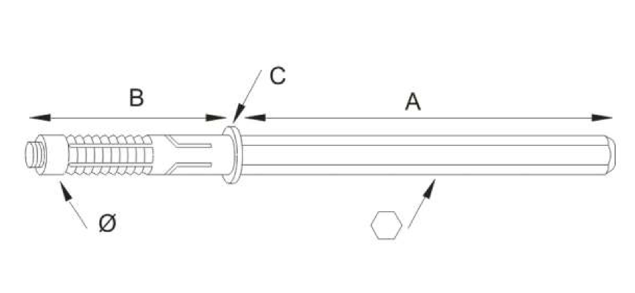 Leichte Version eines Blindbodenträgers aus verzinktem Stahl Strongfix Ø12 x 170 mm