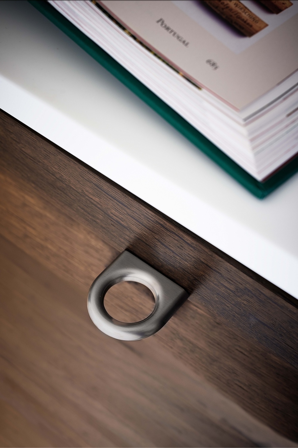 Das Design der Serie „Luck“ ist von Siegelringen und geradlinigen Formen inspiriert. Die 160 mm sind hauptsächlich für Küchen und Badezimmer gedacht. Die 32 mm könnten ideal für Kleiderschränke sein und beide machen sich sehr gut in Büroräumen.