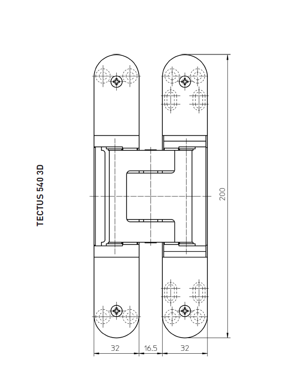 Das Scharnier ist vollständig verdeckt, für flächenbündige Türen an Holz-, Aluminium- und/oder Stahlrahmen.