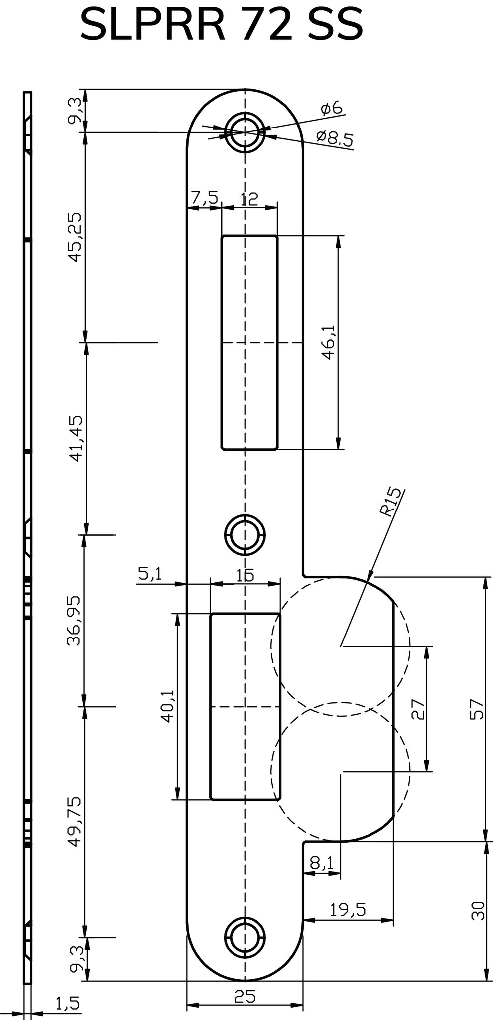 Edelstahl-Schließblech runde Ecken für Sicherheits-Einsteckschloss SKG**® PC72