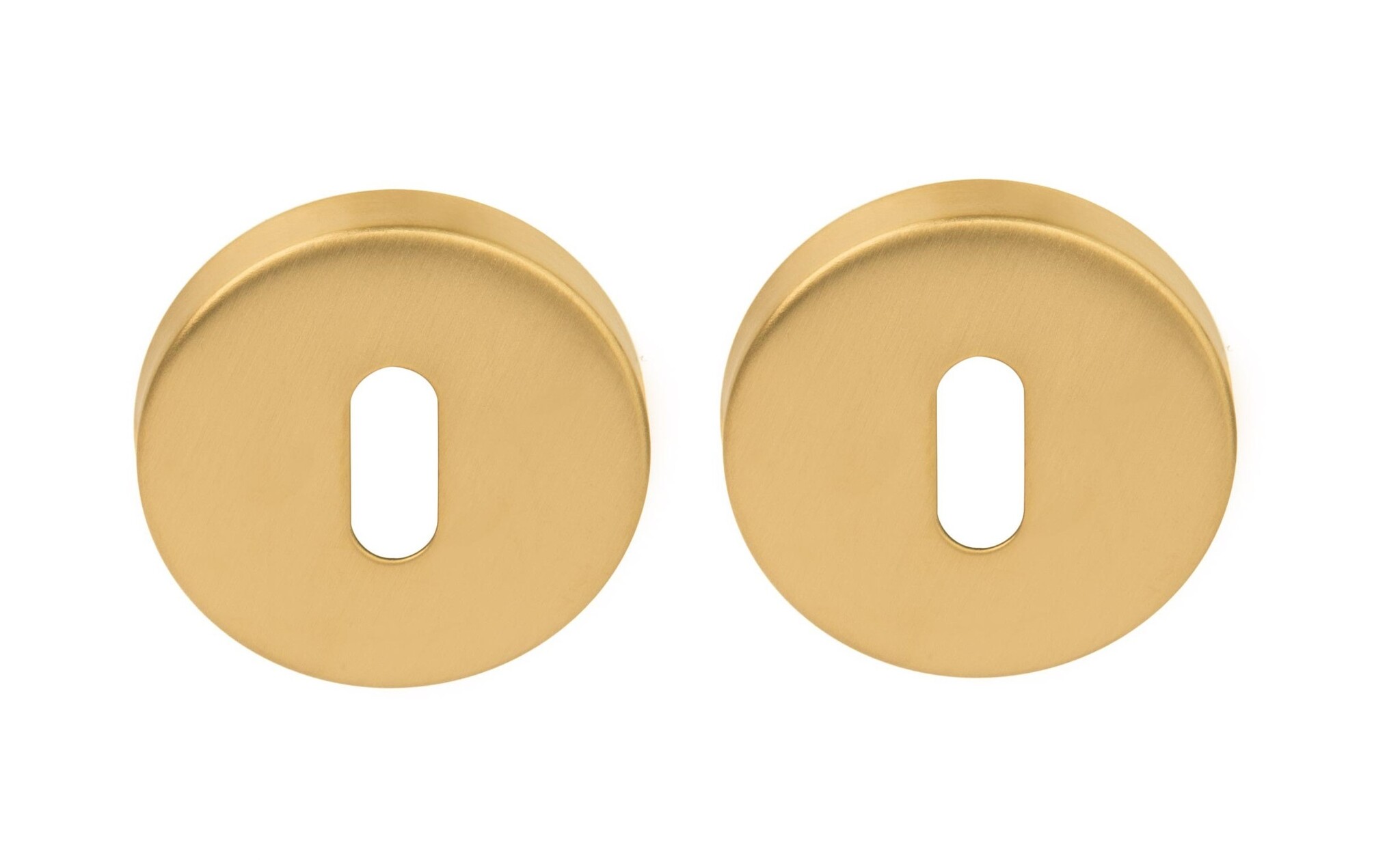 Die PVD-Gold-Schlüsselplatten LBN50D werden paarweise inklusive Bodenrosette, Abschlussrosette und Montagematerial (4 Schrauben) geliefert .