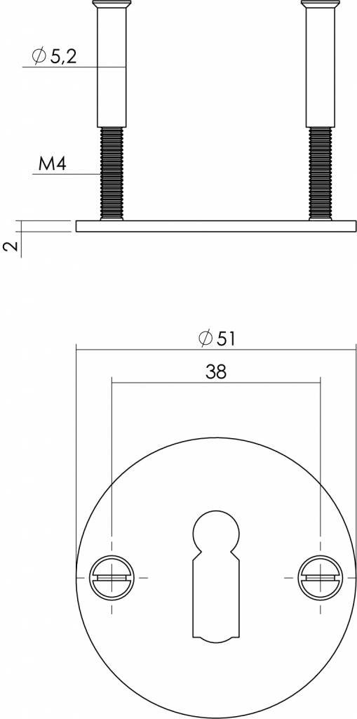 Paar Intersteel-Schlüsselplatten, rund, flach, 50 x 2 mm, Edelstahl für Design-Türgriffe L/L oder L/T