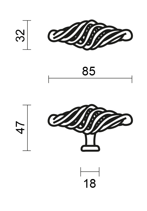 Dieser T-förmige Schrankgriff mit schön gewebtem Griff hat eine Breite von 85 mm und ist 47 mm tief.