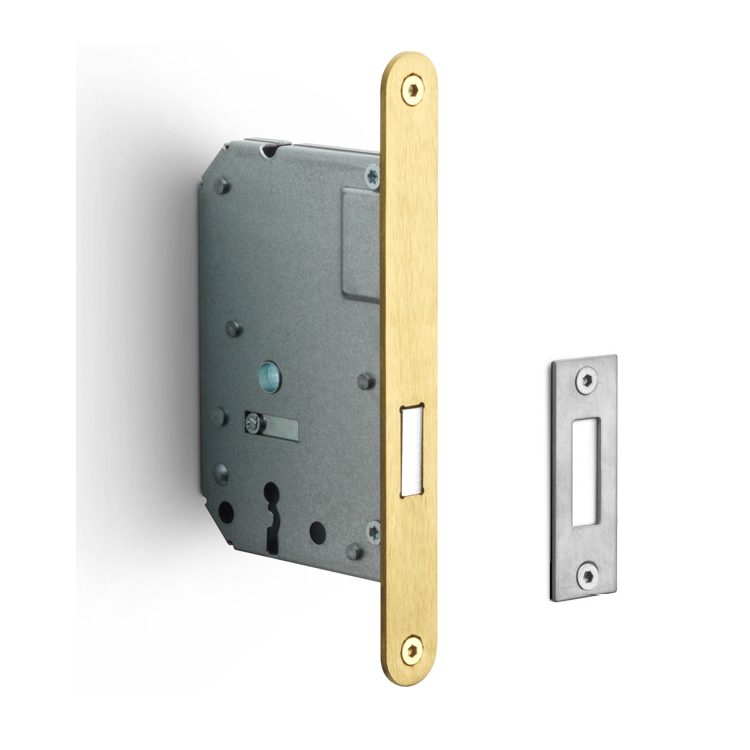 Sie haben die Wahl zwischen einem Schließblech aus mattiertem Edelstahl oder einem Schließblech in der gleichen Oberfläche wie die Frontplatte. Treffen Sie Ihre Auswahl im Scrollmenü oben rechts.