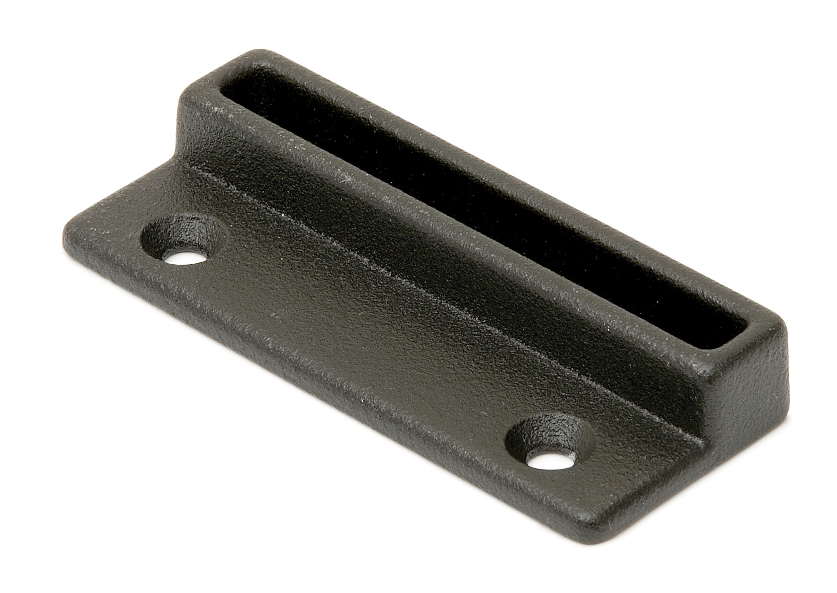 Diese Fensterbaumplatte aus Zamak mit schwarzem Finish hat eine Länge von 74 mm und eine Breite von 30 mm.