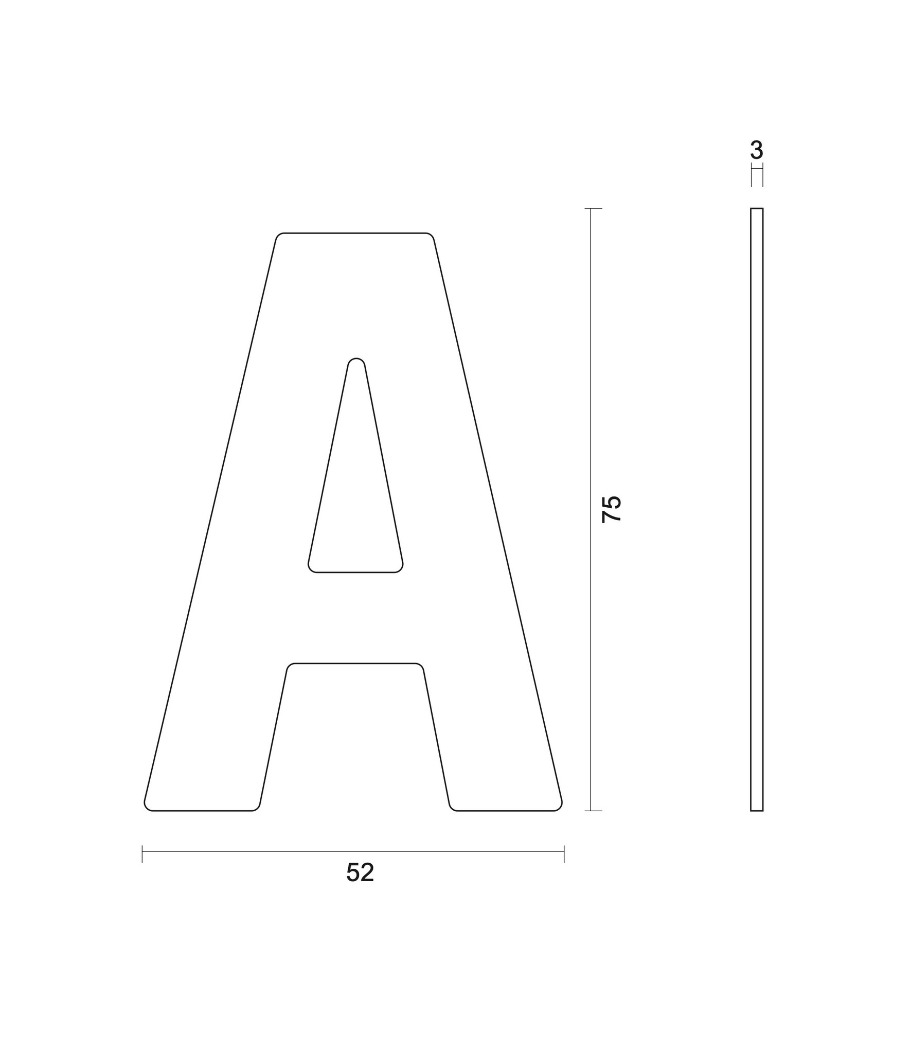 Der flache Hausbuchstabe hat eine Stärke von 3 mm.