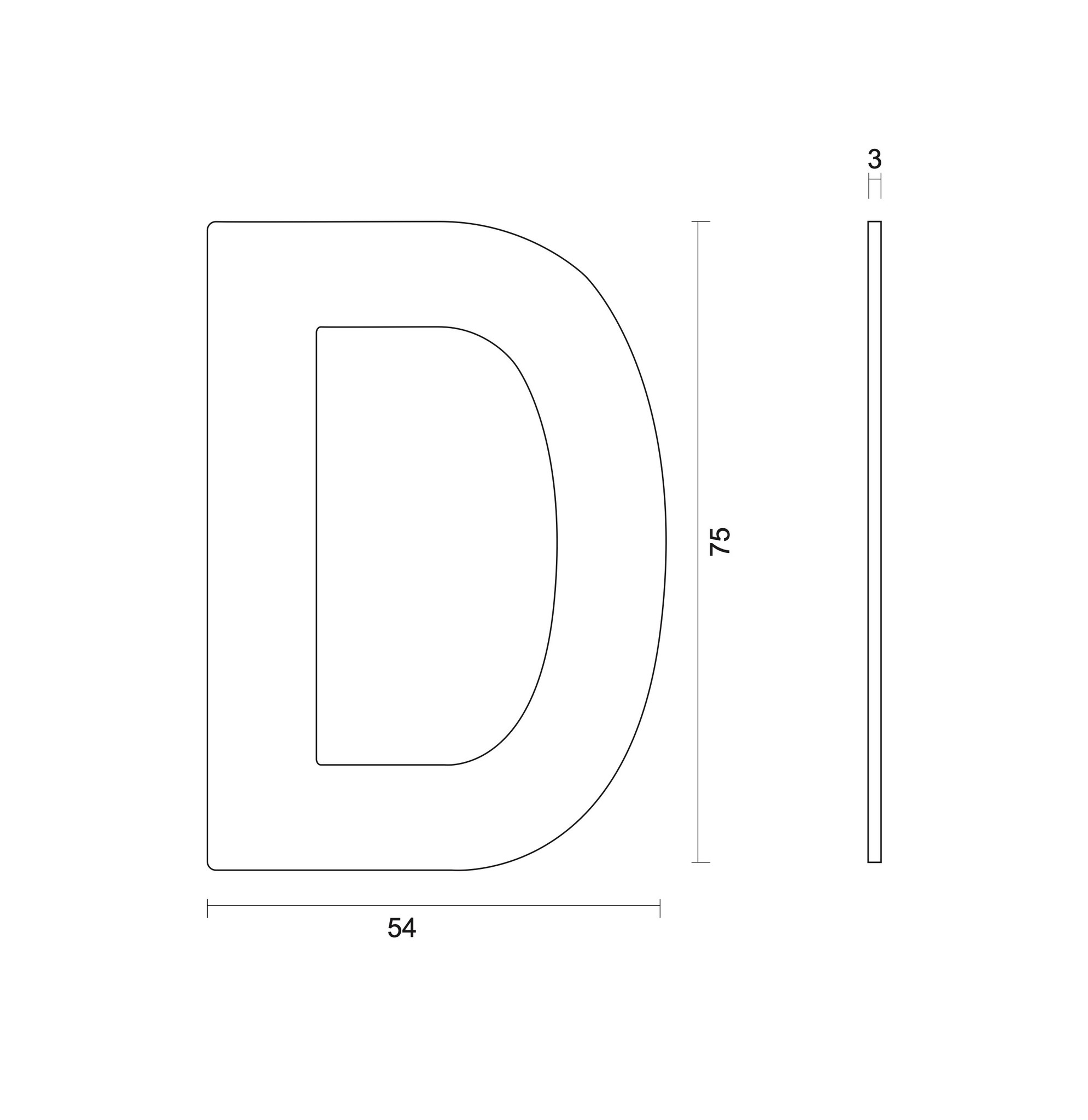 Beschreibung Kleinere Version eines schwarzen flachen Hausbuchstabens „D“, der selbstklebend mit einem UV-beständigen Strukturlack ist