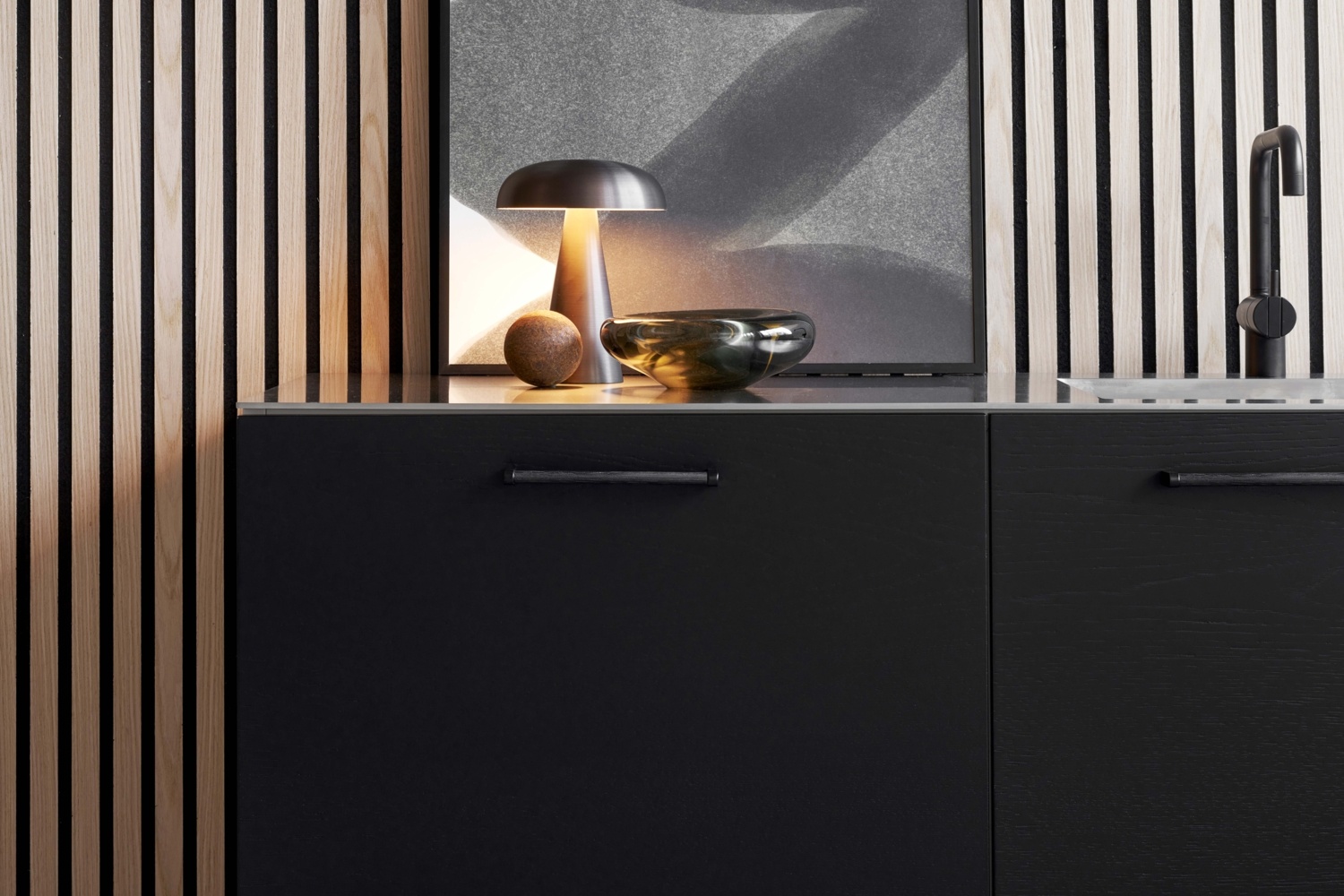Dieser schwarze Möbelgriff besteht aus Holz kombiniert mit Zamakfüßen.