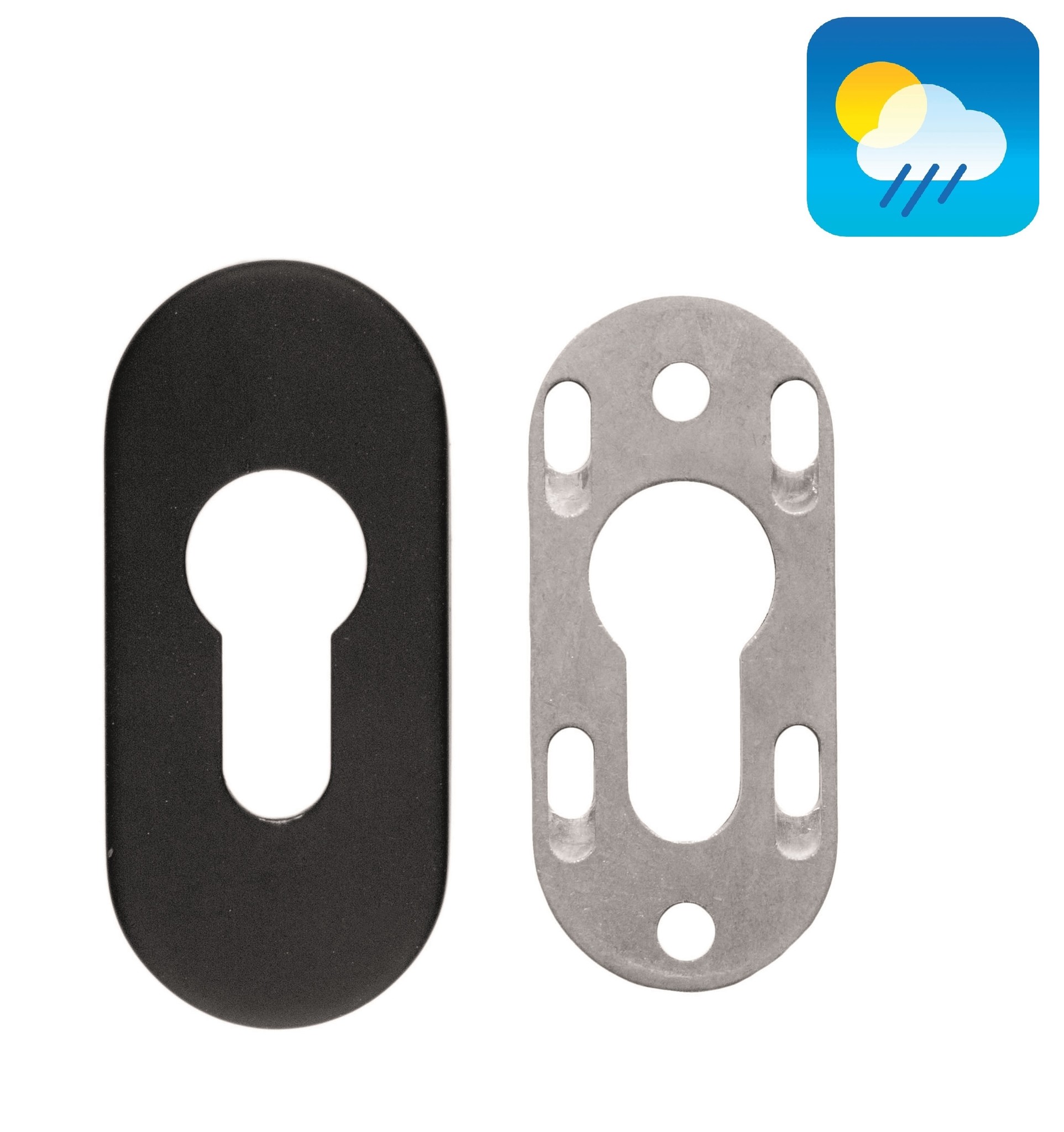 Sicherheitszylinderplatte oval 9mm schwarz matt mit UV-Strukturlack auch für den Außenbereich geeignet