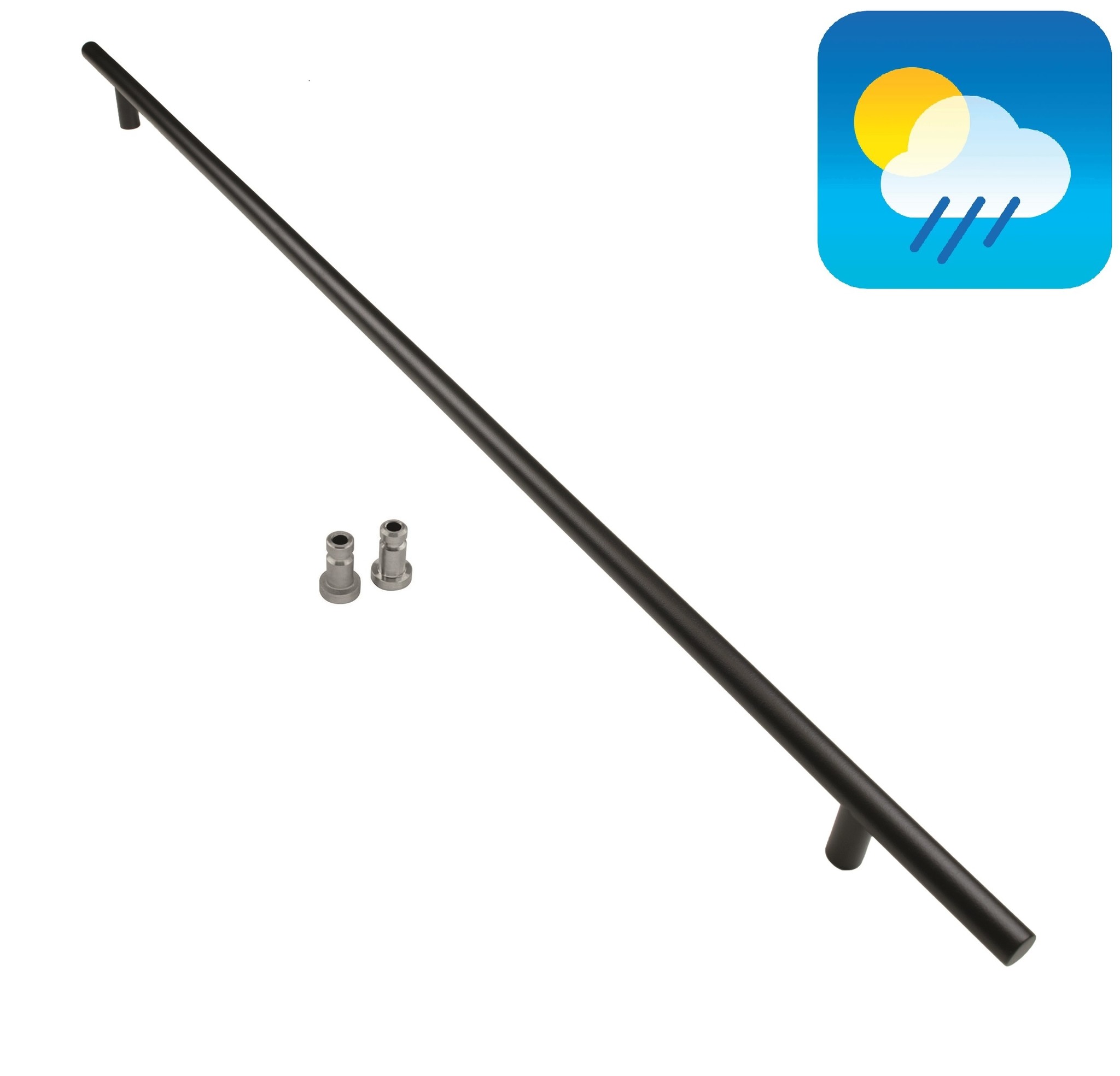 Moderner, geradliniger Türdrücker mit schwarzem UV-beständigem Strukturlack und einem Achsmaß von 1000 mm für Innen- und Außentüren. | Einseitige Montage