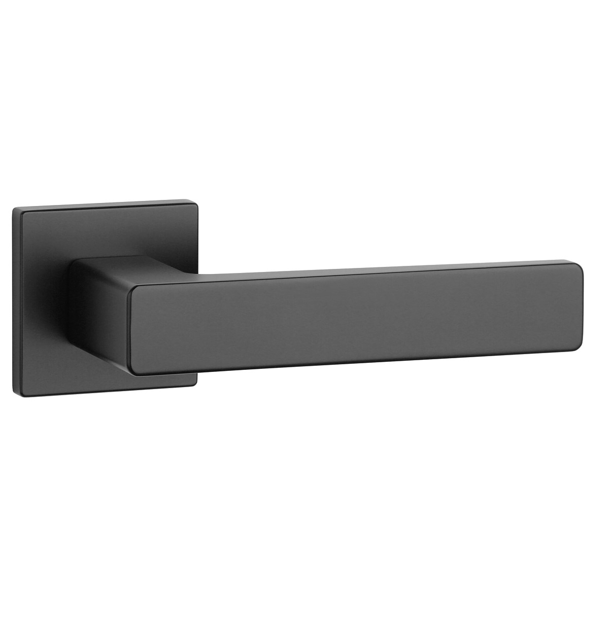 Diese massiven schwarzen Designer-Türgriffe sind auf quadratischen 52x52 mm Rosetten montiert. Die Rosetten sind nur 7 mm dick. Darüber hinaus sind die Rosetten aus einer einzigen Oberfläche gefertigt, was zu einem modernen und eleganten Aussehen führt.