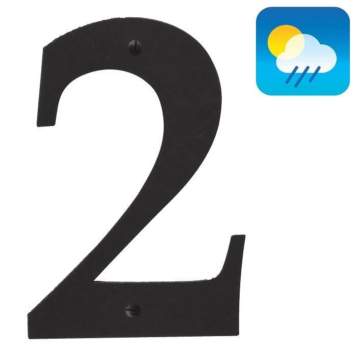 Diese schwarze Hausnummer „2“ ist für die Wandmontage geeignet, hat eine Höhe von 105 mm und eine Dicke von 3 mm.
