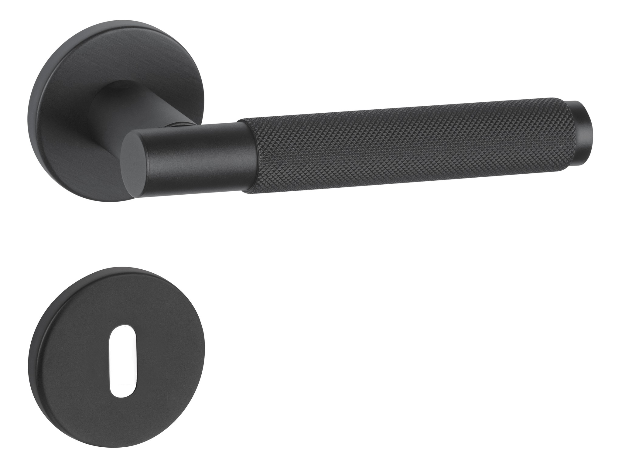 Die Türgriffe sind in 3 Varianten erhältlich: mit Schlüsselschild, mit Zylinderschild oder mit WC-Beschlag. Treffen Sie Ihre Wahl im Scrollmenü oben rechts.