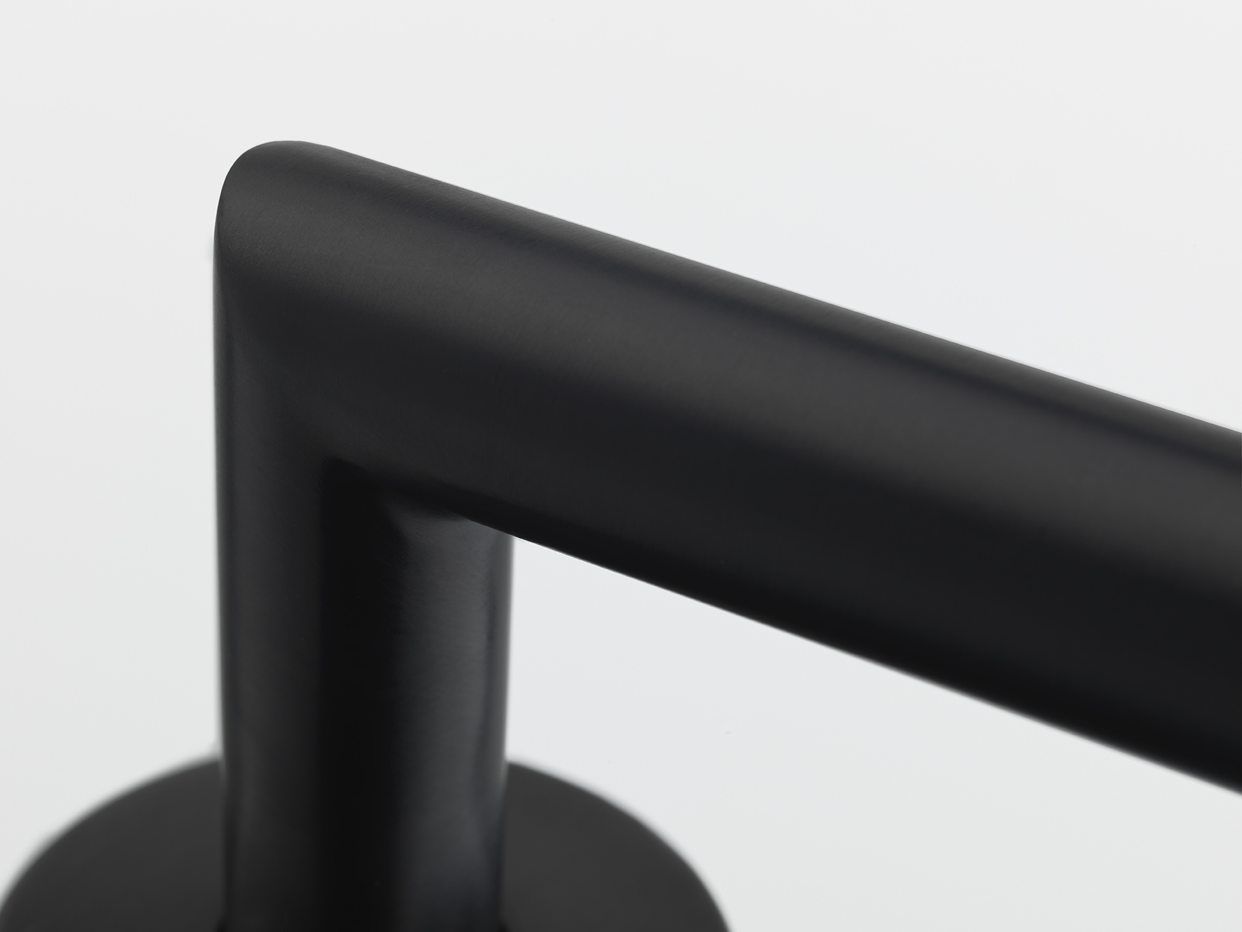 Diese schwarzen Formani-Türgriffe stammen aus der Basics-Serie. Die Basis dieser Türgriffe besteht aus Edelstahl und wird anschließend mit einer mattschwarzen Beschichtung versehen.