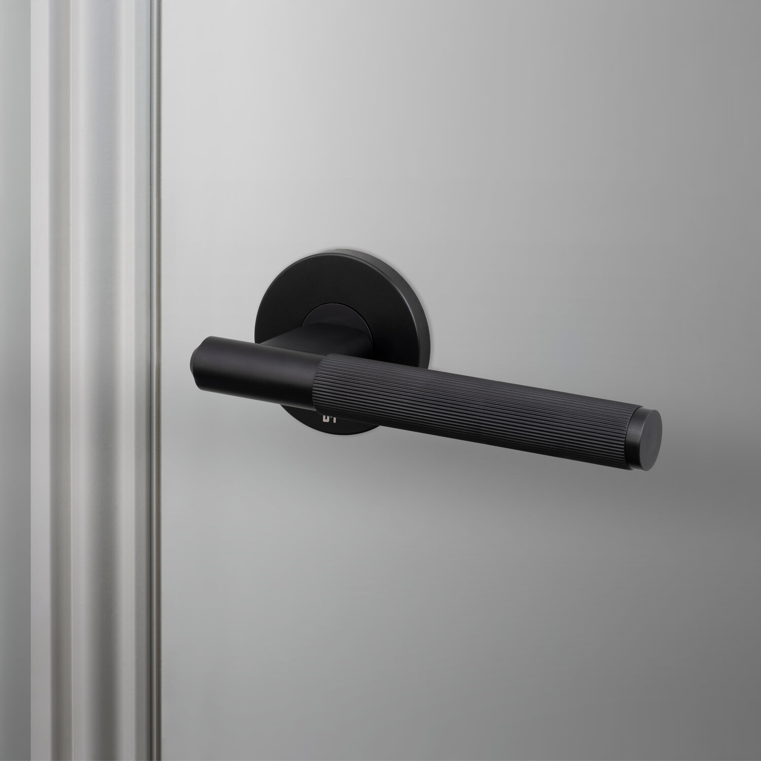 Schwarze massive Türgriffe mit 'linear' geschnittenem Griff der robusten englischen Designmarke Buster & Punch