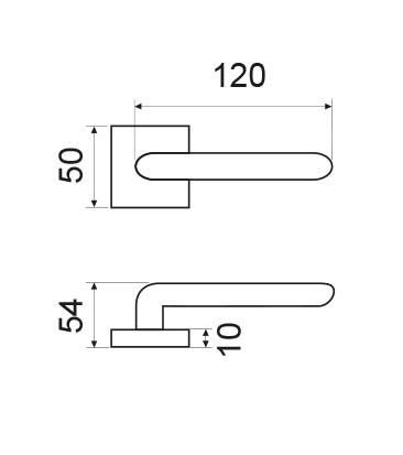 Diese schwarzen Türgriffe haben eine rechteckige Form und stehen auf quadratischen Rosetten von 50 x 50 x 10 mm.