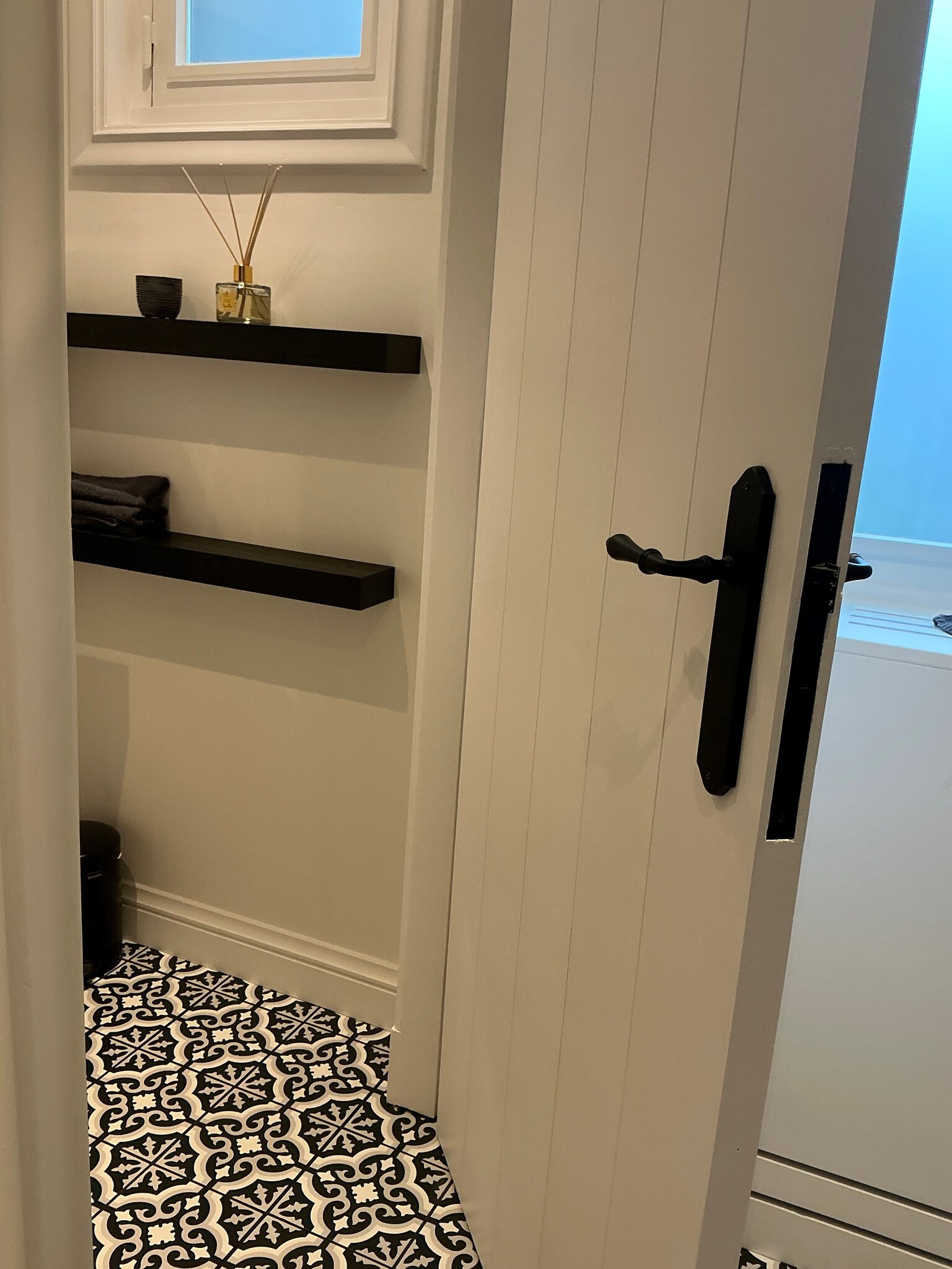 Die Türdrücker werden paarweise auf einem rustikalen Schild mit oder ohne Schlüsselöffnung geliefert und sind für Innentüren von 38-43 mm geeignet.