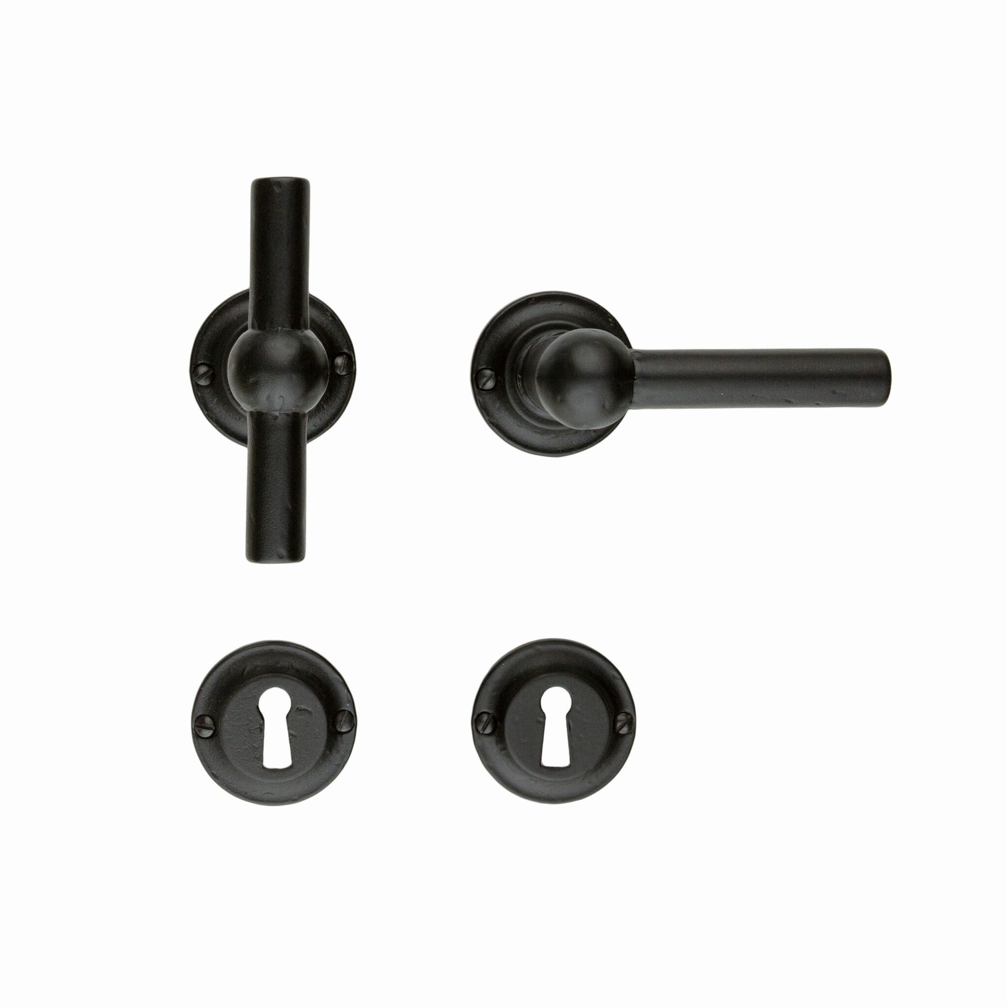 Diese soliden, klassischen schwarzen Türgriffe stehen auf einer runden Rosette von 44 mm und werden mit einem Vierkantstift (8 x 8 mm) und Montagematerial geliefert.