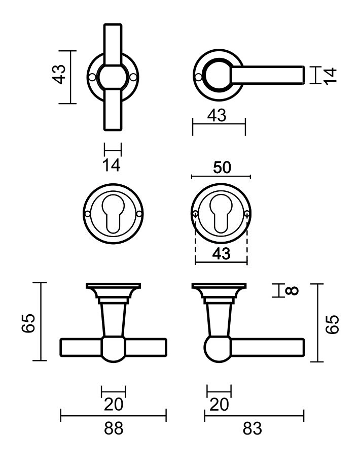 Diese Türgriffe sind in 4 Varianten erhältlich: ohne Schlüsselschilder, mit Schlüsselschildern, mit Zylinderschildern und mit WC-Beschlägen. Treffen Sie Ihre Wahl im Scrollmenü oben rechts .