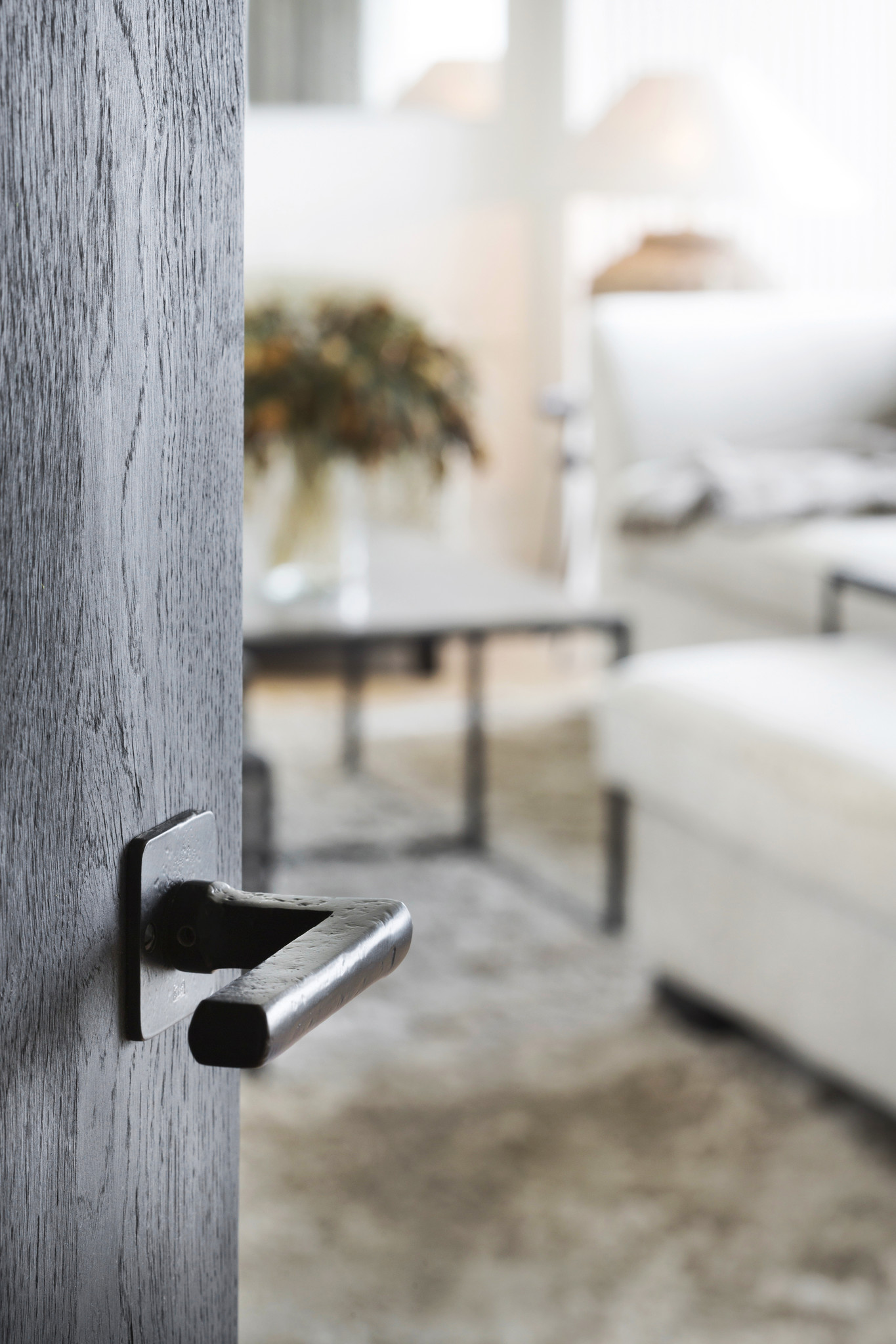 Lochteil-Türgriffe PH1920 aus der Pure-Kollektion von Dauby aus gealtertem Eisen ohne Schlüsselplatten