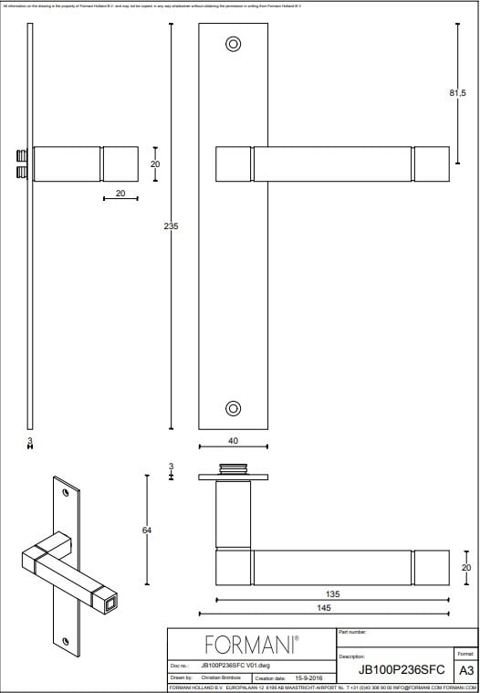 Der Schild mit Toiletten-/Badverschluss, an dem sich diese schwarzen Griffe befinden, ist 235 mm hoch und 40 mm breit. Der quadratische Griff ist 20 x 20 mm groß und 135 mm lang.