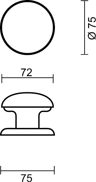 Es ist ein ziemlich großer Knopf mit einem Durchmesser von 72 mm. Die Rosette hat einen Durchmesser von 75 mm und eine Dicke von 9 mm.