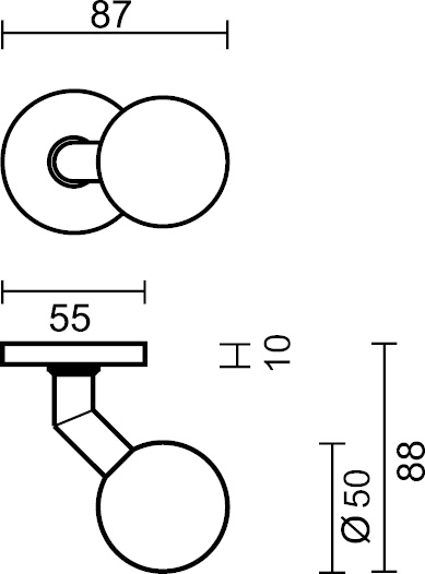 Die Rosette hat eine Dicke von 10 mm und einen Durchmesser von 55 mm. Die Gesamttiefe des schwarzen Knopfes beträgt 88 mm.