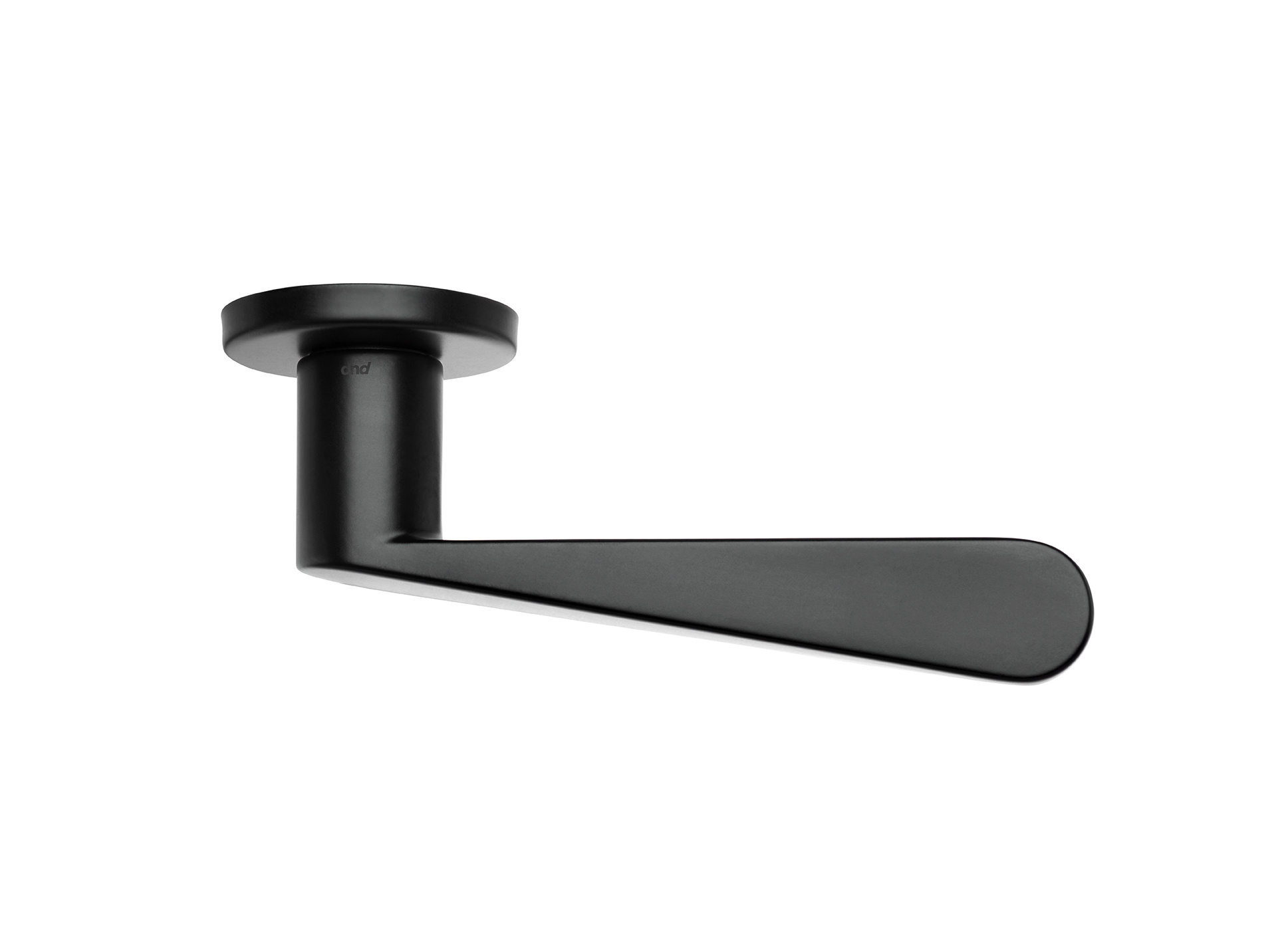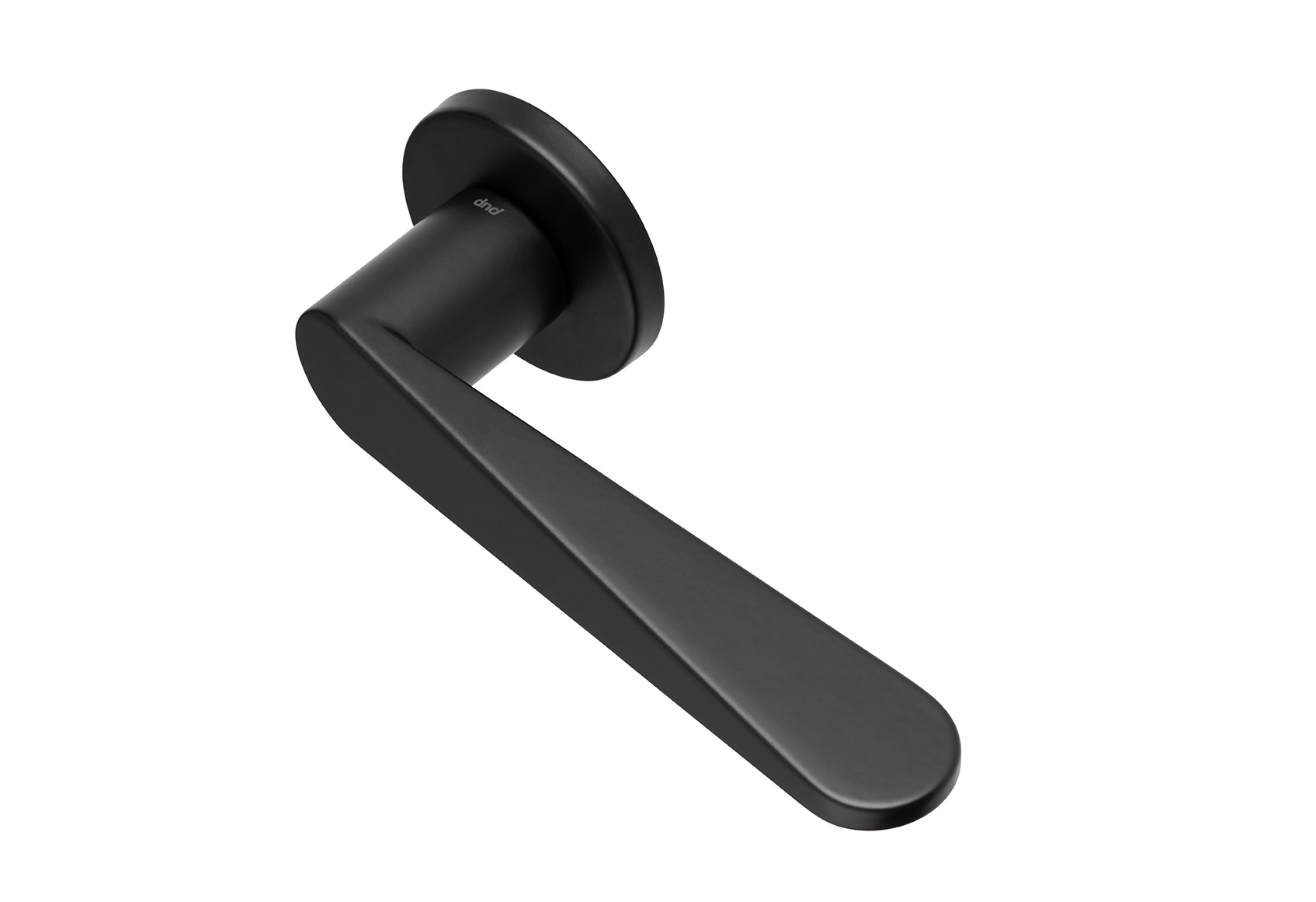 Schwarze Türgriffe von DnD mit speziell entwickeltem dreieckigem Griff.