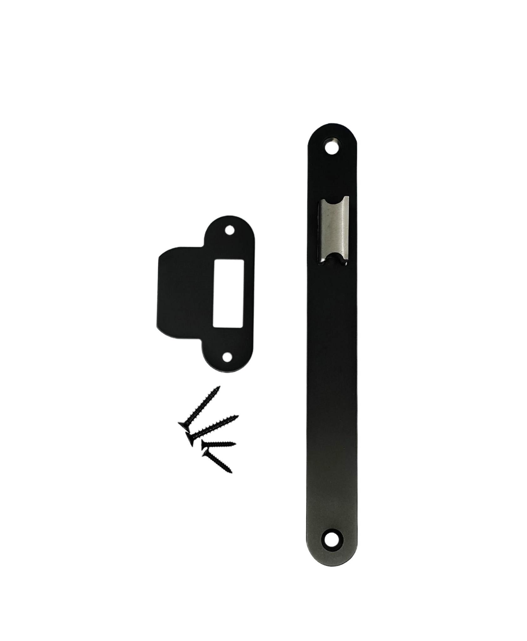 Dieses schwarze schmale Schloss besteht aus Edelstahl und wird anschließend mattschwarz eloxiert. Das schwarze Schmalschloss wird mit einem schwarzen, abgerundeten Schließblech und inklusive schwarzen Schrauben geliefert.
