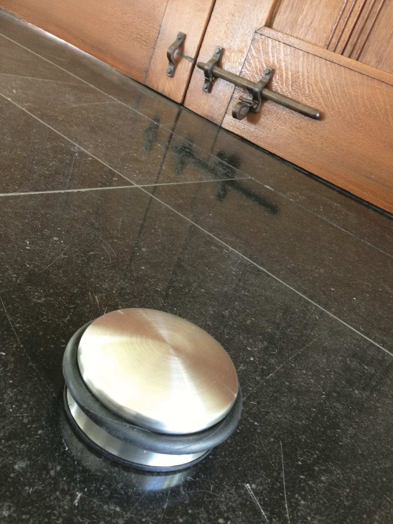 Schwerer Bodentürstopper aus Edelstahl zum Schutz Ihrer Tür und Wand vor Beschädigungen.
