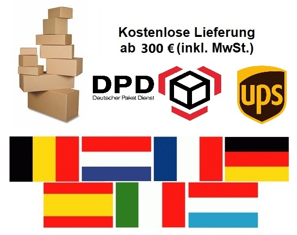 Für die Lieferung arbeiten wir mit UPS und DPD zusammen, um Ihre Bestellung schnell und mit gutem Service zuzustellen.