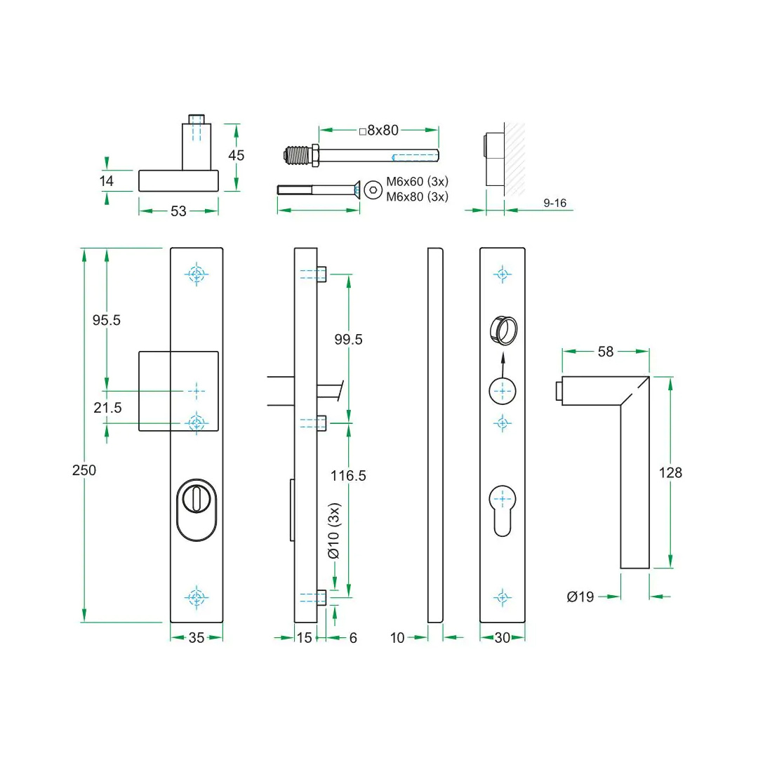 Die verdeckte Schraubbefestigung in der Türplatte sorgt für ein elegantes und modernes Erscheinungsbild ohne sichtbare Befestigungspunkte. Geeignet für Türstärken von 37 bis 57 mm und kompatibel mit Aluminium-, Holz-, PVC- und Stahltüren, ist dieser Türbeschlag vielseitig einsetzbar und eignet sich sowohl für Wohngebäude als auch für Gesundheitseinrichtungen sowie für stark frequentierte Gebäude.
