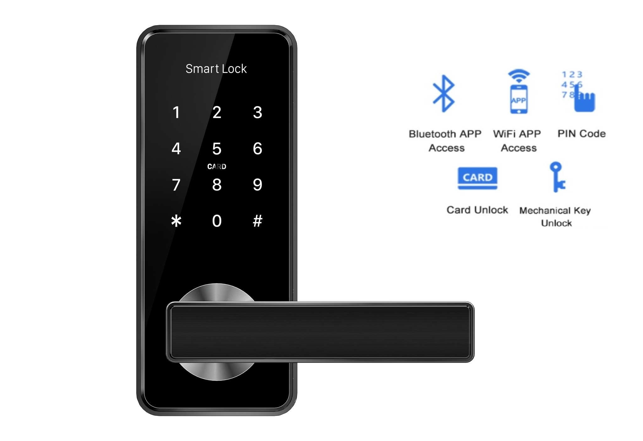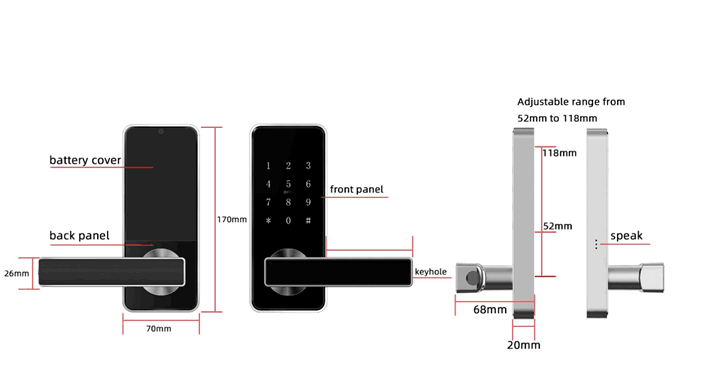 Die Kombination, dass diese intelligenten Schlösser auf 5 verschiedene Arten geöffnet werden können, macht diese Türgriffe hervorragend für Eingangstüren oder Innenräume geeignet. Dies ist der gleiche Türgriff wie beim Typ D11B, jedoch ohne Fingerabdruckscan.