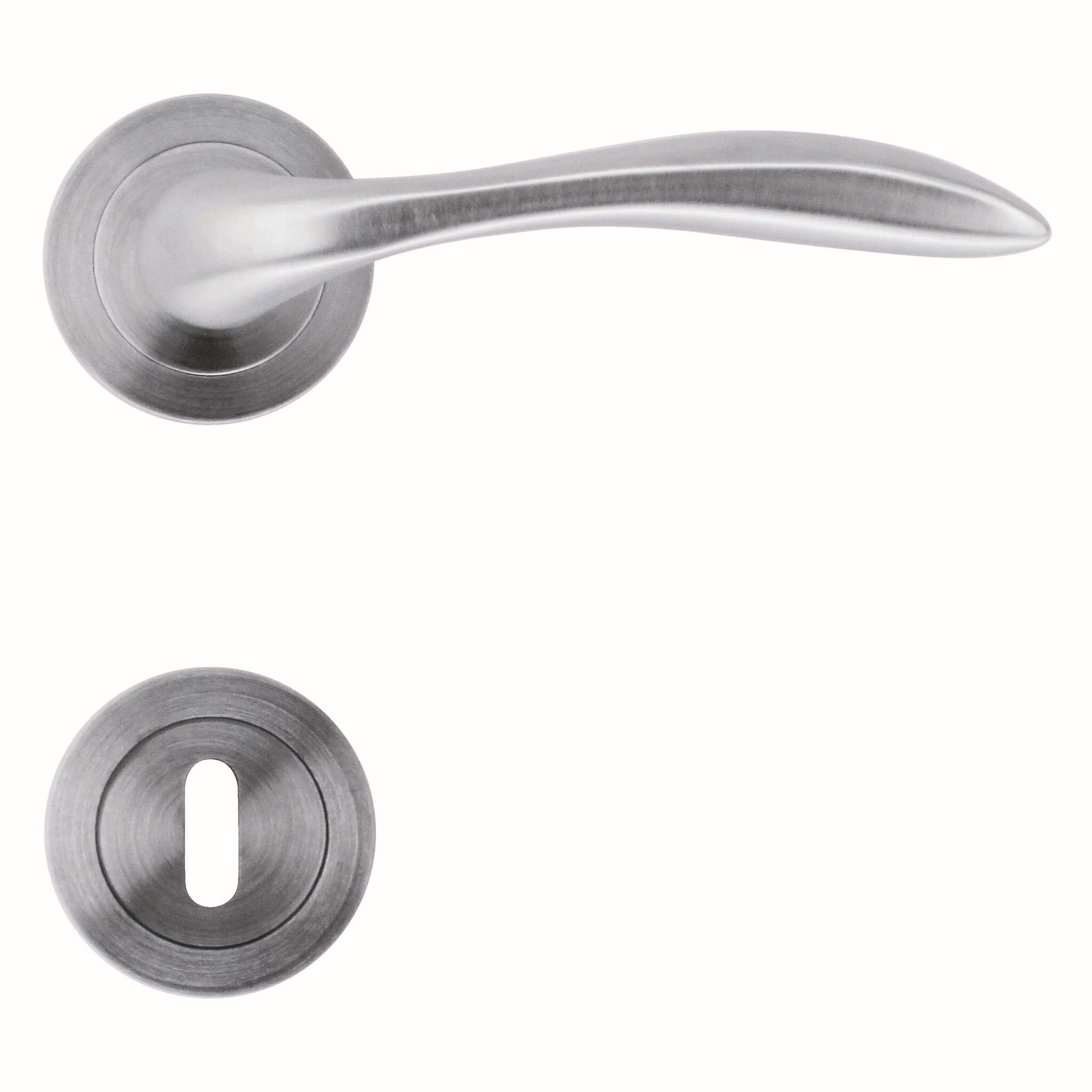 Diese Türgriffe sind in 4 Varianten erhältlich: ohne Schlüsselschilder, mit Schlüsselschildern, mit Zylinderschildern und mit WC-Beschlägen. Treffen Sie Ihre Wahl im Scrollmenü oben rechts .