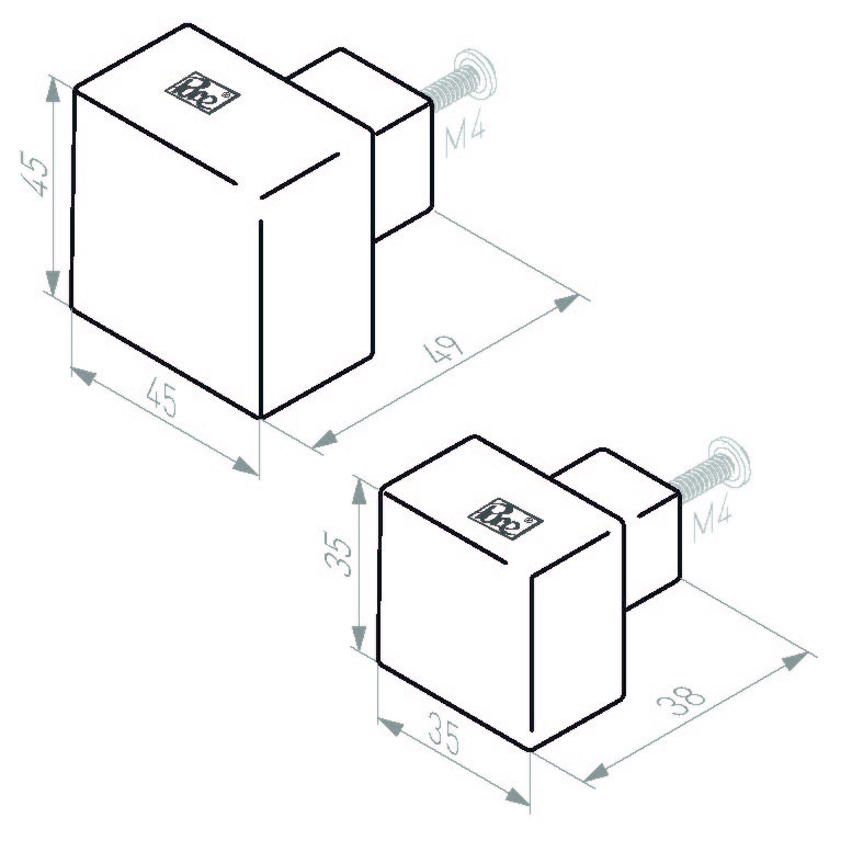 Dieser quadratische Möbelknopf ist in 5 Größen erhältlich (PQ15 - PQ20 - PQ25 - PQ35 - PQ45). Dieses Modell ist die Rohmetallversion PQ35.
