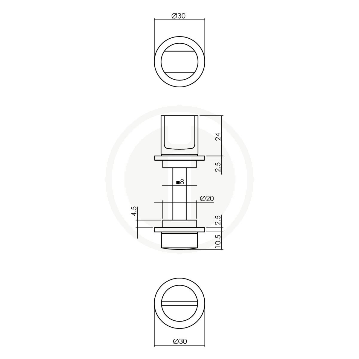 Diese runde Rosette mit einem Ø von 30 mm ist nur 2,5 mm dick und hat eine selbstklebende Befestigung. Die perfekte Lösung für Stahltüren oder schmale Türpfosten!