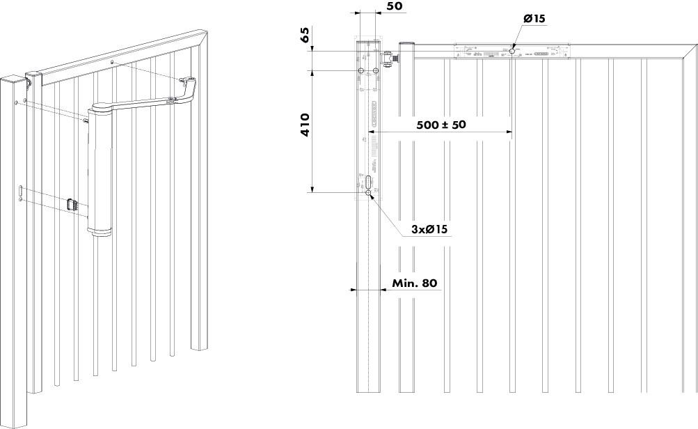 • Für Fußgängertore bis 1400 mm Breite und 100 kg