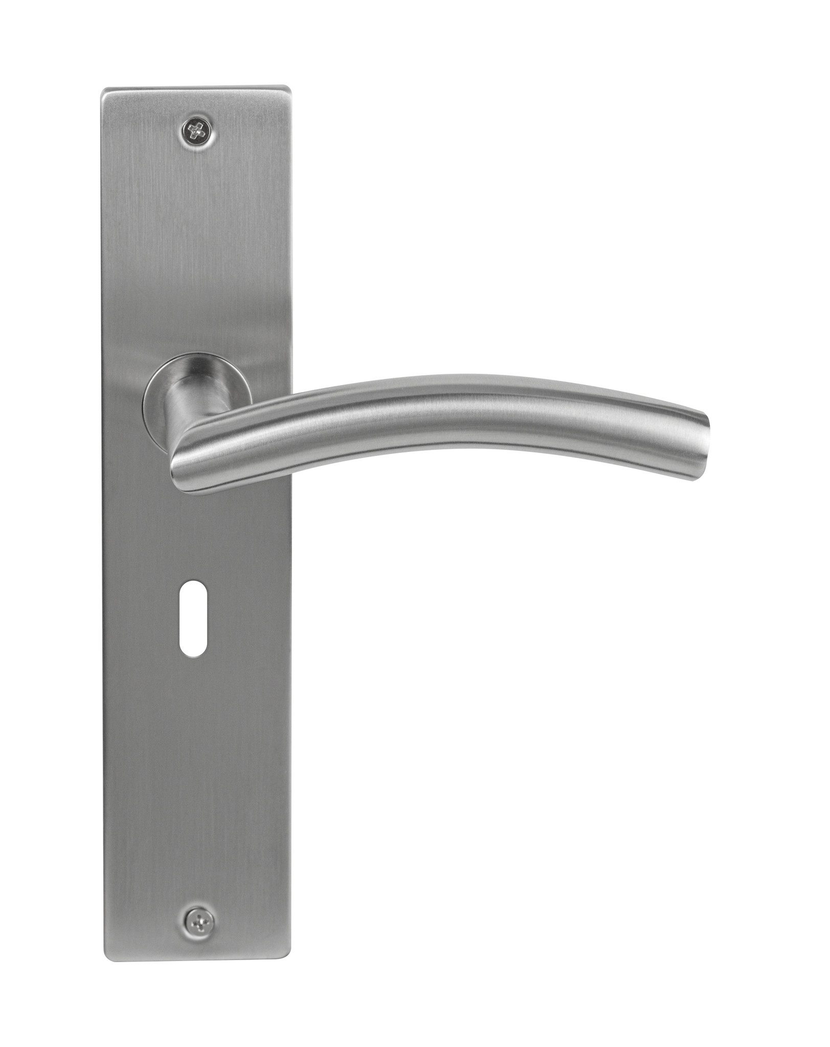 Diese Edelstahl-Türgriffe Brasilia werden mit einem rechteckigen langen Schild von 245x53x9 mm (LxBxT) geliefert.