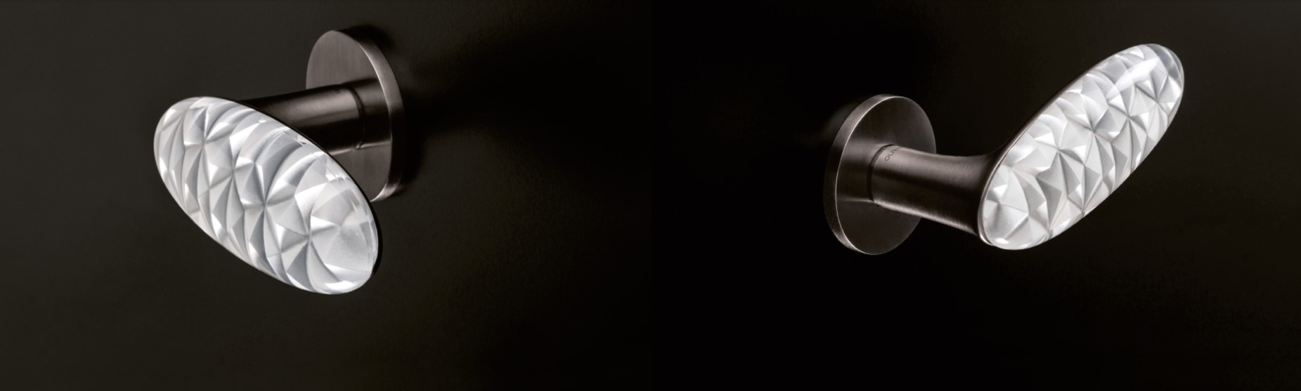 Diese speziellen Türgriffe in anthrazit PVD mit Kristallglas wurden von Marcel Wanders entworfen