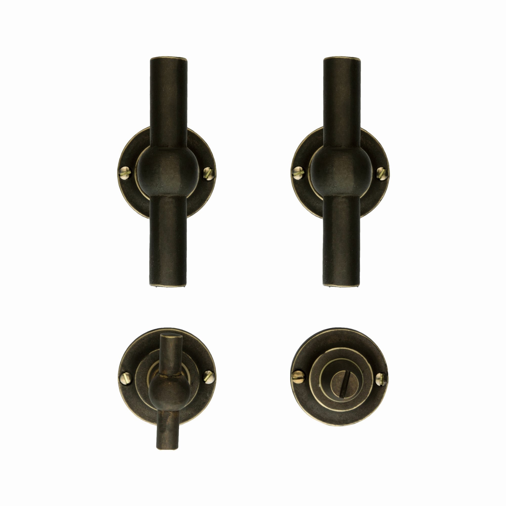 Diese Türgriffe sind in einer T+T-Kombination erhältlich und aus Altmessing gefertigt.